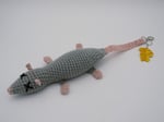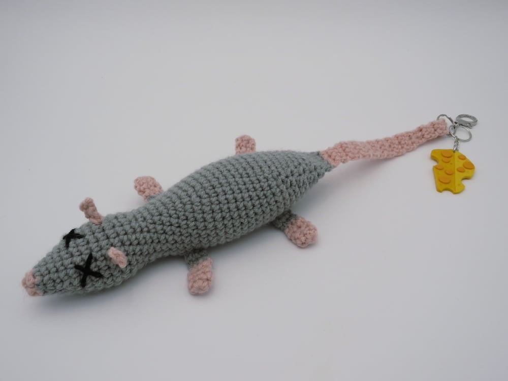 Stuffed rat charm is made with acrylic yarn (do not machine wash) and is approximately 17 inches long